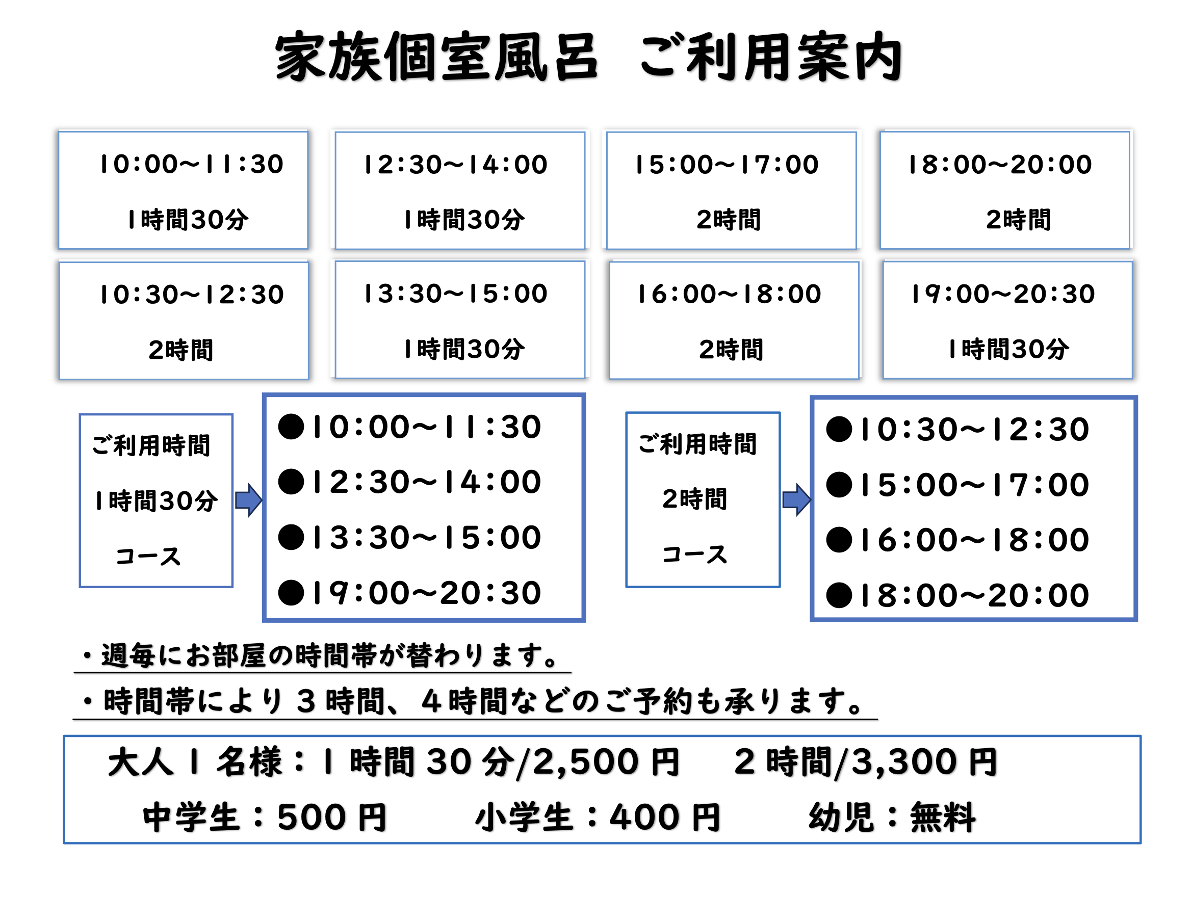 ・ 個室料金には大浴場・休憩所の利用料も含まれております。